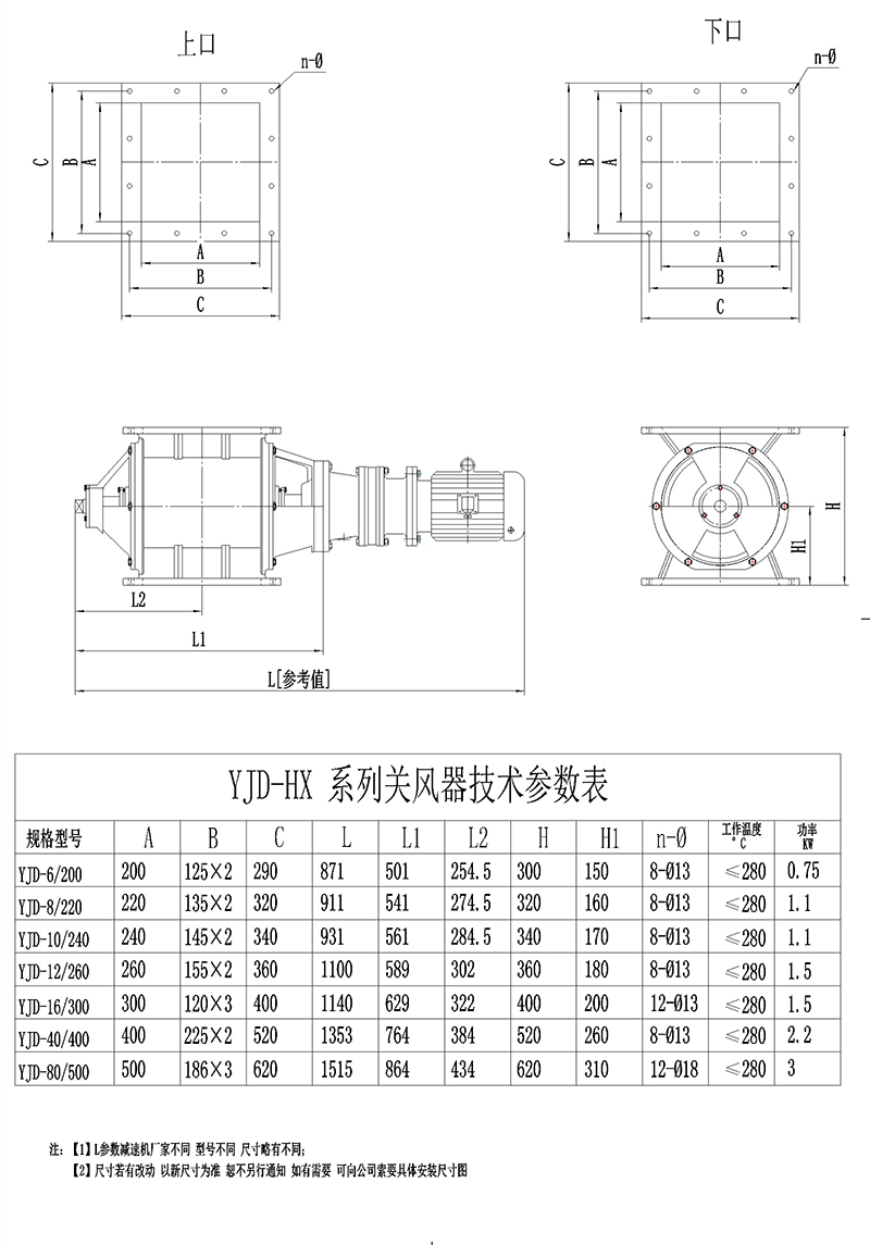 YCD型卸料器結(jié)構(gòu)緊湊,造型美觀,使用方便。運轉(zhuǎn)平穩(wěn),噪音低。由于軸承、齒箱離開殼體一段距離,對于高溫、潤滑都有較大改善。是為環(huán)保、冶金、化工、糧食、食品等工業(yè)部門廣泛應(yīng)用。除塵設(shè)備排灰、送風(fēng)和其它設(shè)備給料的主要設(shè)備,適用于粉狀物料和顆料狀物料。 YJD星型卸料器用于安裝在負(fù)壓下工作的卸料器的排料口處,上部接受卸料器排出的物料,依靠旋轉(zhuǎn)的葉輪起著輸送物料的作用,又擔(dān)負(fù)著密封的作用,防止氣力輸送過程中從排料口吸入空氣,保證卸料器的正常排料。